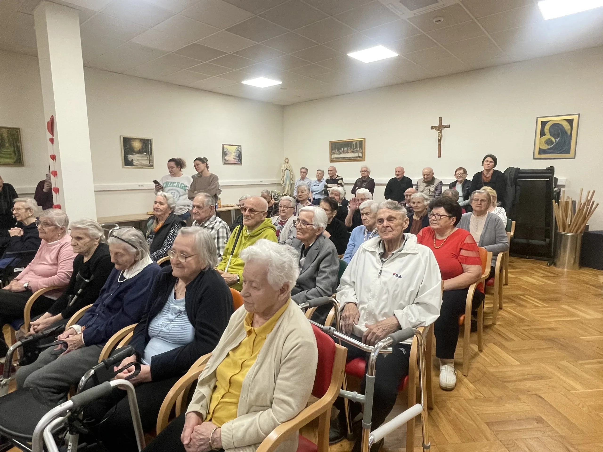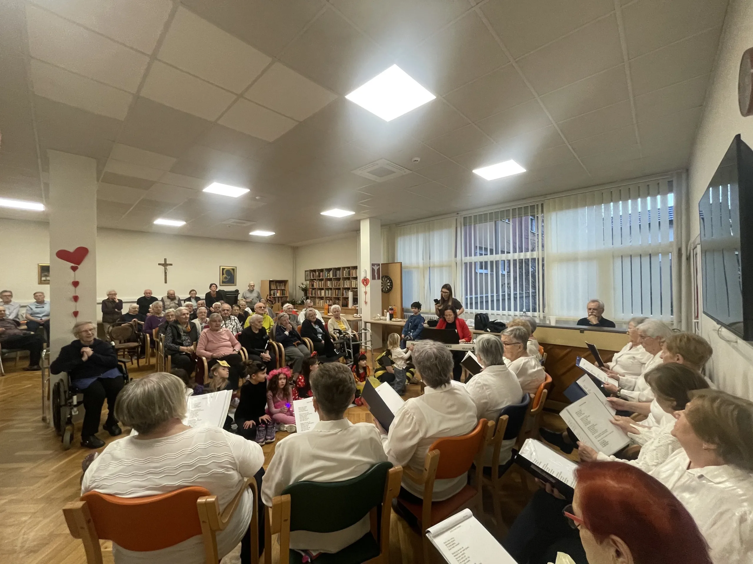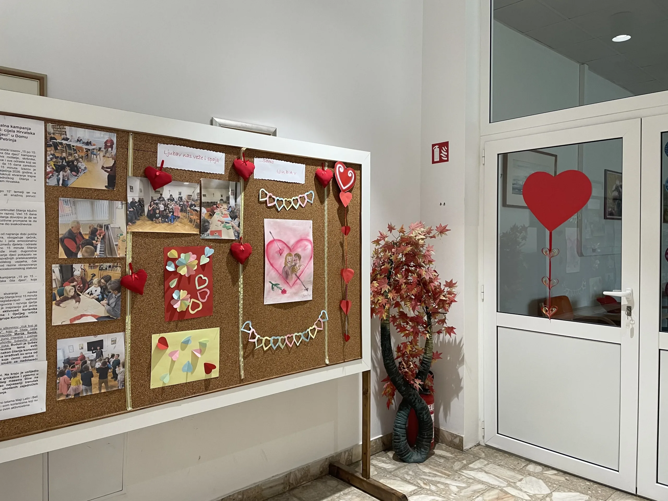 Ovaj dan su naši korisnici proveli uz radionice i lijepa druženja iza kojih je cijeli Dom osvanuo u simbolima ljubavi. Izrada ukrasnih srca, lančića, uređenje panoa i interijera, uljepšali su ovih dana boravak u Domu, a uoči samog Valentinova u petak 13. veljače za korisnike Doma, prigodan su program izvele „Bijele ruže“ i djeca HPD „Slavulj“. Bila je to lijepa večer prepuna emocija, ljubavnih stihova i nota u kojoj je dominirala ljubav kroz izričaj različitih generacija.